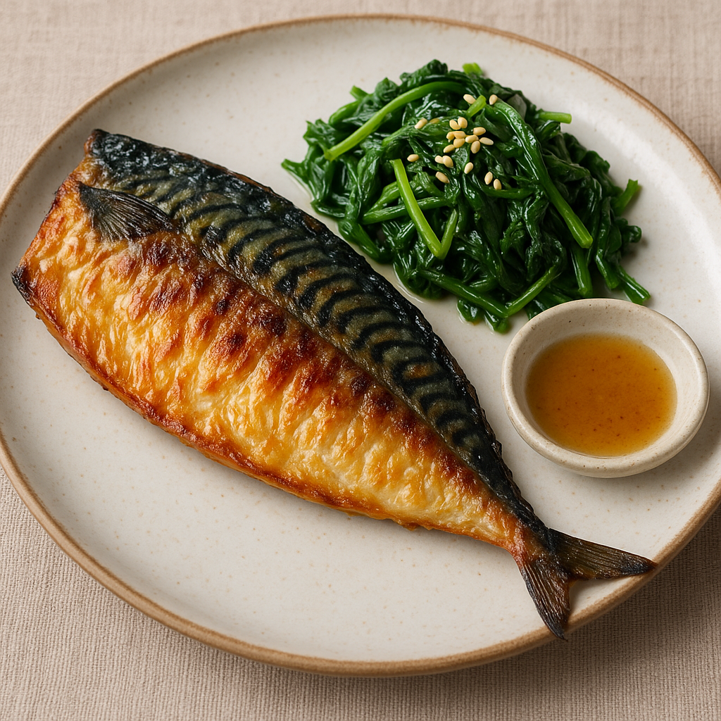 🌙 저녁: 가볍게 면역력 보충! 고등어구이 & 시금치 나물